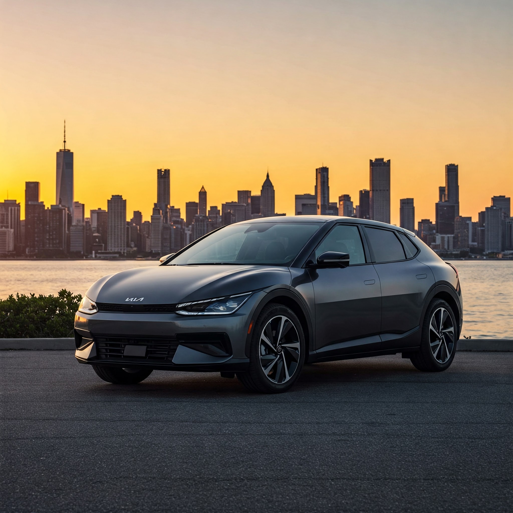 🔹 전면부 – 기아의 "Digital Tiger Face" 디자인이 적용되어 한눈에 전기차임을 알 수 있음.