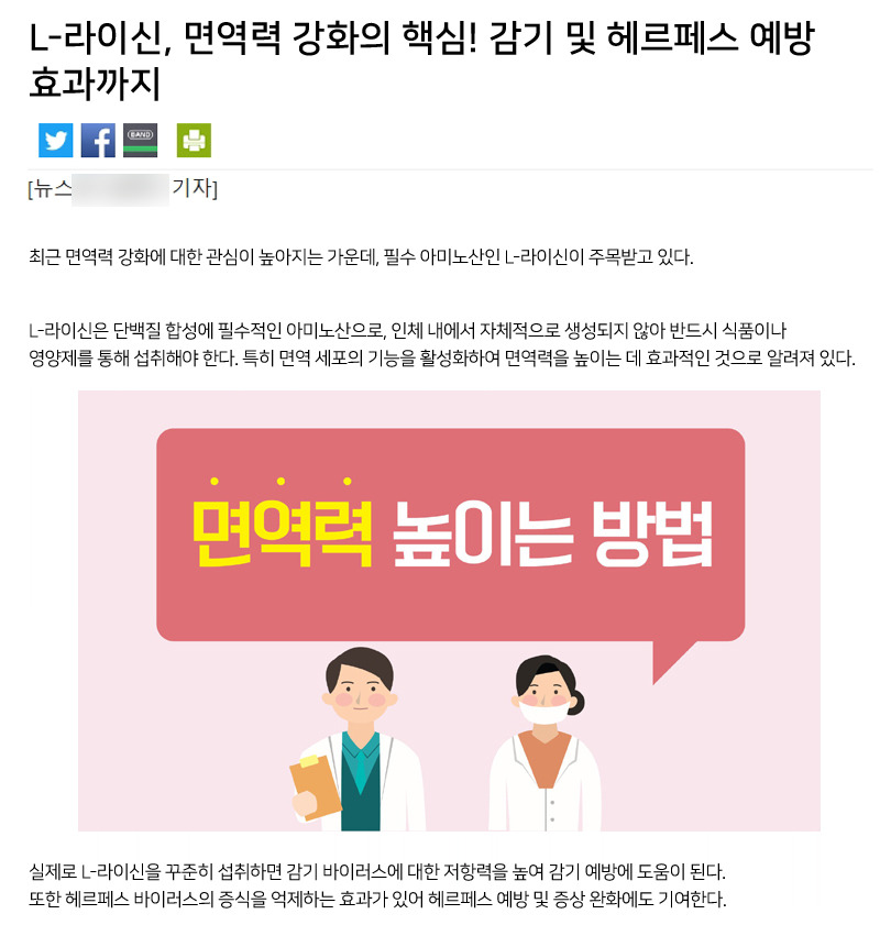 L-라이신을 판매하는 업체들이 마치 건강기능식품인 것처럼 광고를 하는데