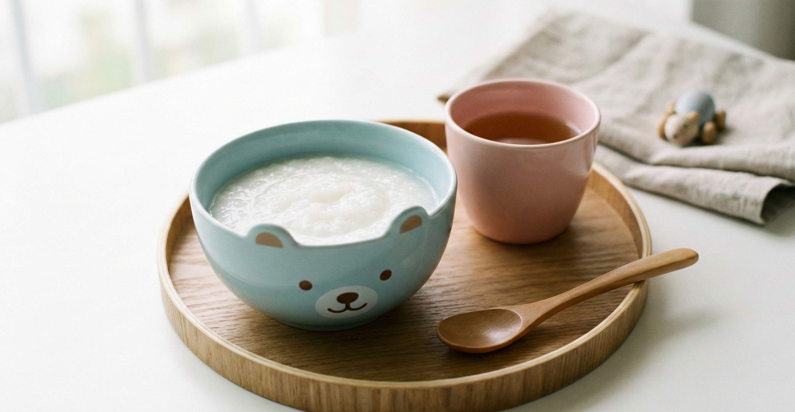 ② 굶기는 게 답? No! 부드러운 미음부터 초반에 구토가 너무 심하면 한두 끼 정도 금식하며 속을 비워주는 게 좋아요. 그러다 토가 멈추고 아이가 배고파하면 쌀을 푹~ 퍼지게 끓인 흰 미음이나 묽은 죽을 조금씩 주세요. 소고기, 야채 다 빼고 쌀로만 끓인 게 소화에 제일 좋아요.