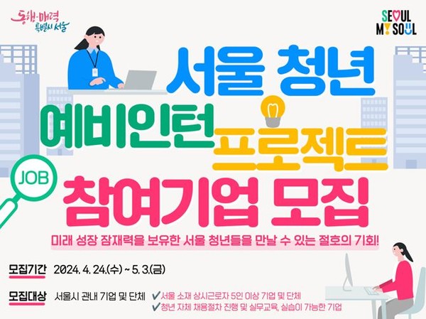 서울청년 예비인턴 프로젝트는 청년들에게는 실질적인 경험을, 기업들에게는 우수 인재를 확보할 수 있는 기회를 제공합니다. 참여를 희망하는 기업들은 정해진 기간 내에 신청하여 이 프로그램의 혜택을 누리시기 바랍니다. 추가적인 정보는 청년 몽땅 정보통 웹사이트를 통해 확인할 수 있습니다.