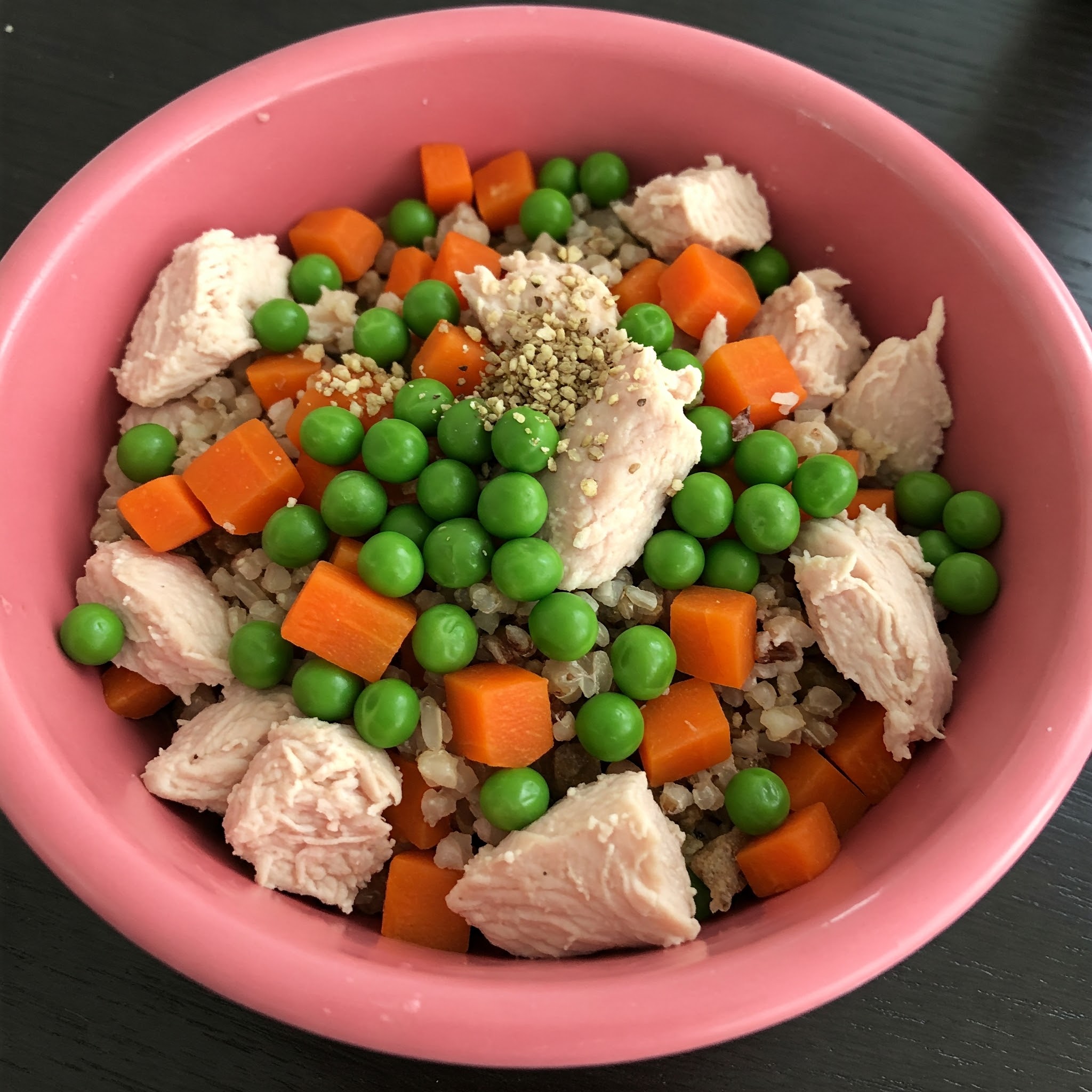 ✅ 재료: 닭가슴살 100g, 고구마 50g, 당근 30g, 브로콜리 20g
