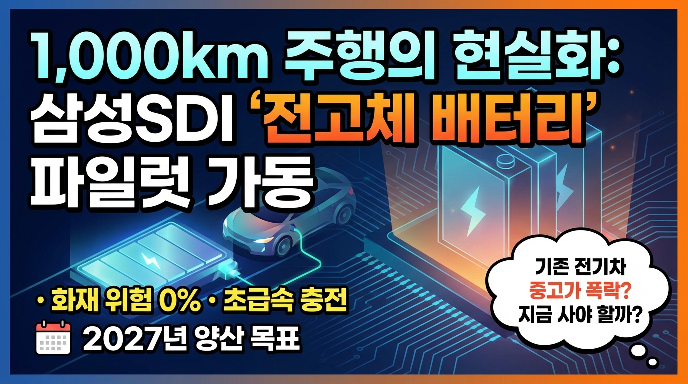 전기차 화재의 공포와 충전 스트레스가 영원히 사라집니다. 2027년 양산을 앞두고 오늘 최종 파일럿 라인 가동에 들어간 삼성SDI 전고체 배터리의 실체와 중고 전기차 시장의 파장을 심층 분석합니다.